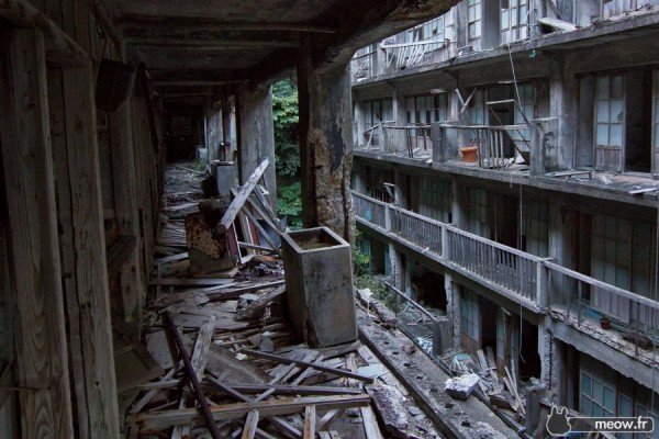 La isla (por su tamaño quizás sea mejor hablar de islote) está completamente edificada y estuvo habitada hasta 1974, principalmente por trabajadores de la compañía Mitsubishi que se dedicaban a la extracción de carbón y por sus familias. Llegó a tener en sus mejores momentos más de 5000 habitantes, contando con escuela, zona de ocio, residencial, etc. Pero cuando en enero de 1974, debido a la progresiva sustitución del carbón por petróleo, acabó cerrándose definitivamente la mina, los cerca de 2000 habitantes que quedaban abandonaron la isla en tan sólo tres meses. Y abandonada ha permanecido hasta nuestros días, con sus edificios de hormigón vacíos a merced de los tsunamis deteriorándose año tras año.Durante este tiempo el único acceso posible ha sido mediante barco. Ha sido visitada por curiosos, grafiteros, fotógrafos, hasta se han llegado a celebrar «raves», aunque por razones de seguridad la isla lleve algunos años cerrada al público en su mayor parte. Así que mientras que algunas partes han quedado prácticamente intactas, muebles, máquinas tragaperras, pupitres, otras se han derrumbado o inundado.